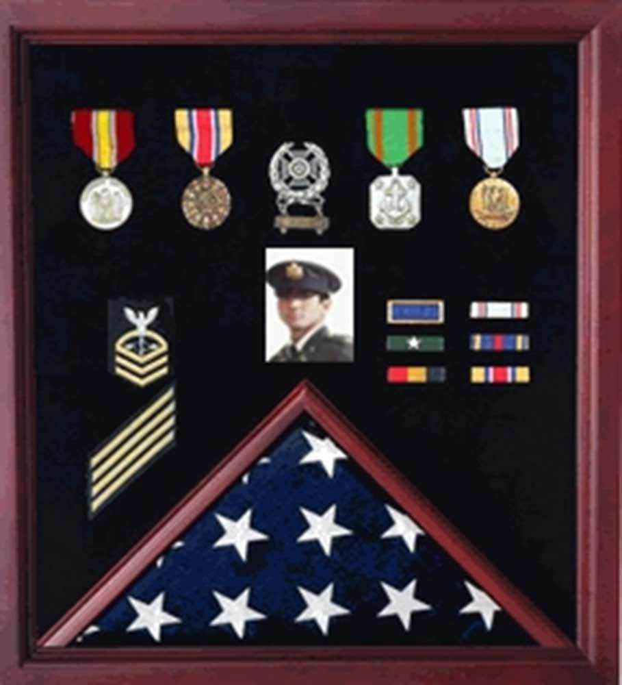 Flag Display Case Combination For Medals and Photos - Cherry is backordered and will ship as soon as it is back in stock.