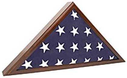 5' x 9.5' Flag Display Case for Veteran Funeral, Burial Flag -CHERRY As a patriotic American, you cherish the U.S. Flag. Display your respect by storing your flag in this handsomely constructed Cherry Flag Case. It feature a seven-step finishing process, a Plexiglas front, and a removable back panel for easy flag insertion. It can be either mounted to the wall by using the included brass-plated Sawtooth hanger or left free-standing. Frame constructed of top-quality Appalachian hardwood. Back panel made of high-density fiberboard that stays secure via turn knobs. Joints are joined with staples and jet weld glue. Holds the traditional burial 5' X 9' 1/2" flag. DIMENSIONS: 25 3/8" x 12 9/16" x 3 3/16".