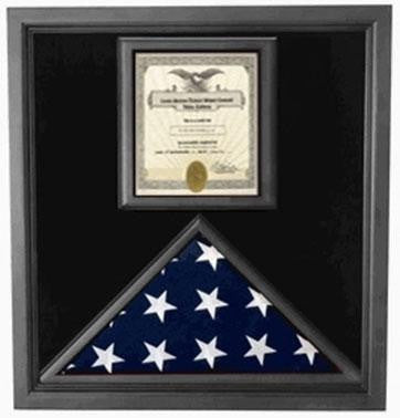 Our flag and certificate case is made with real wood, with a clear plexiglass front , boarded back, which enables any displayed medals to stand out. It also has room to prominently display an 8.5 X 11 certificate.