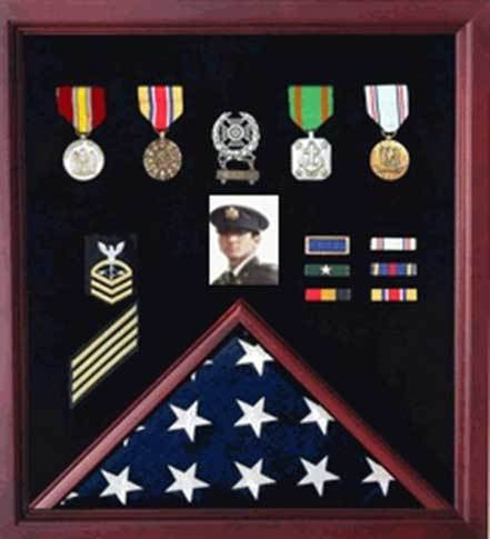 "Incredible craftsmanship. The flag fits perfectly, the medals shine under the display lighting, and the photo space brought it all together. My son was speechless when we gave it to him for his retirement." - Richard Evans, Topeka, Kansas