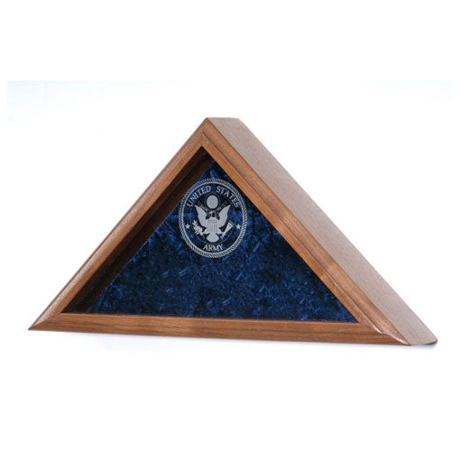 Military Veteran Funeral Flag Display Case - For Burial Casket Flag - INCLUDES Engraved Military Emblem.