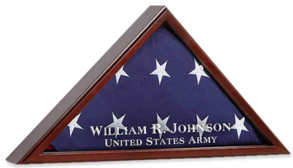 "Absolutely beautiful craftsmanship. The cherry wood is rich, and the etched glass was perfect. A proud display for my dad's Capitol flag."
