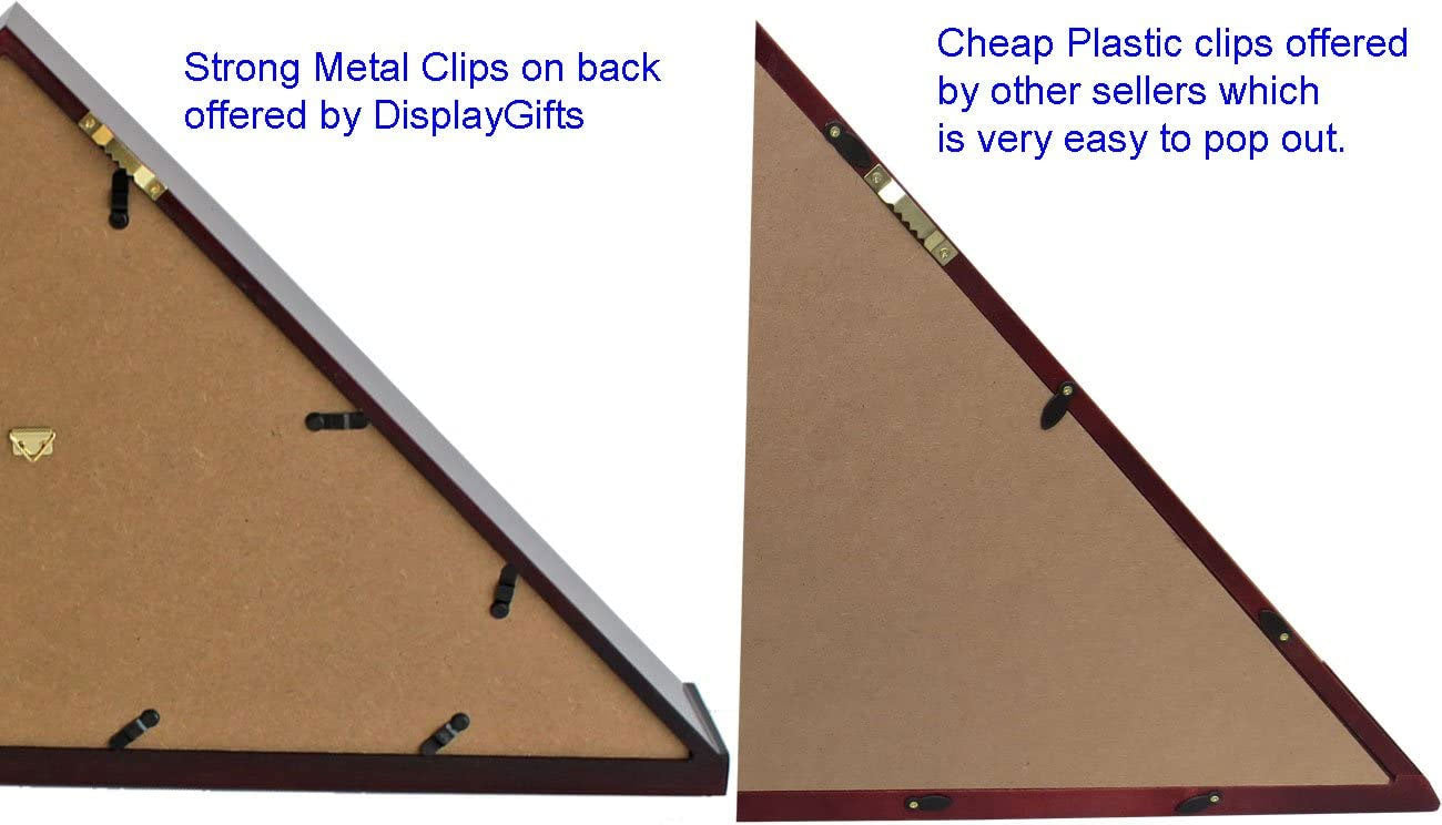 Introducing the ultimate American Flag Display Case for Burial Funeral Flag 5'X9.5' - the Navy flag case. Crafted with top-quality beech wood and a stained cherry finish, this highly durable triangular flag display case is designed to keep your cherished flag safe and secure for years to come. Handcrafted from solid wood, the Navy flag case is built to last, ensuring that your flag remains in pristine condition for years to come.