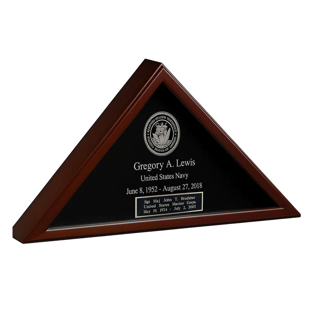 "This flag case is absolutely stunning. The cherry wood finish and custom engraving brought tears to our eyes. We gave it to my dad after his retirement from the Navy, and he was speechless." - Jennifer Martinez, San Diego, California