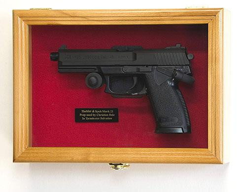 Single Pistol Display Case Wall Mount Solid Hardwood Cabinet Gun Holder