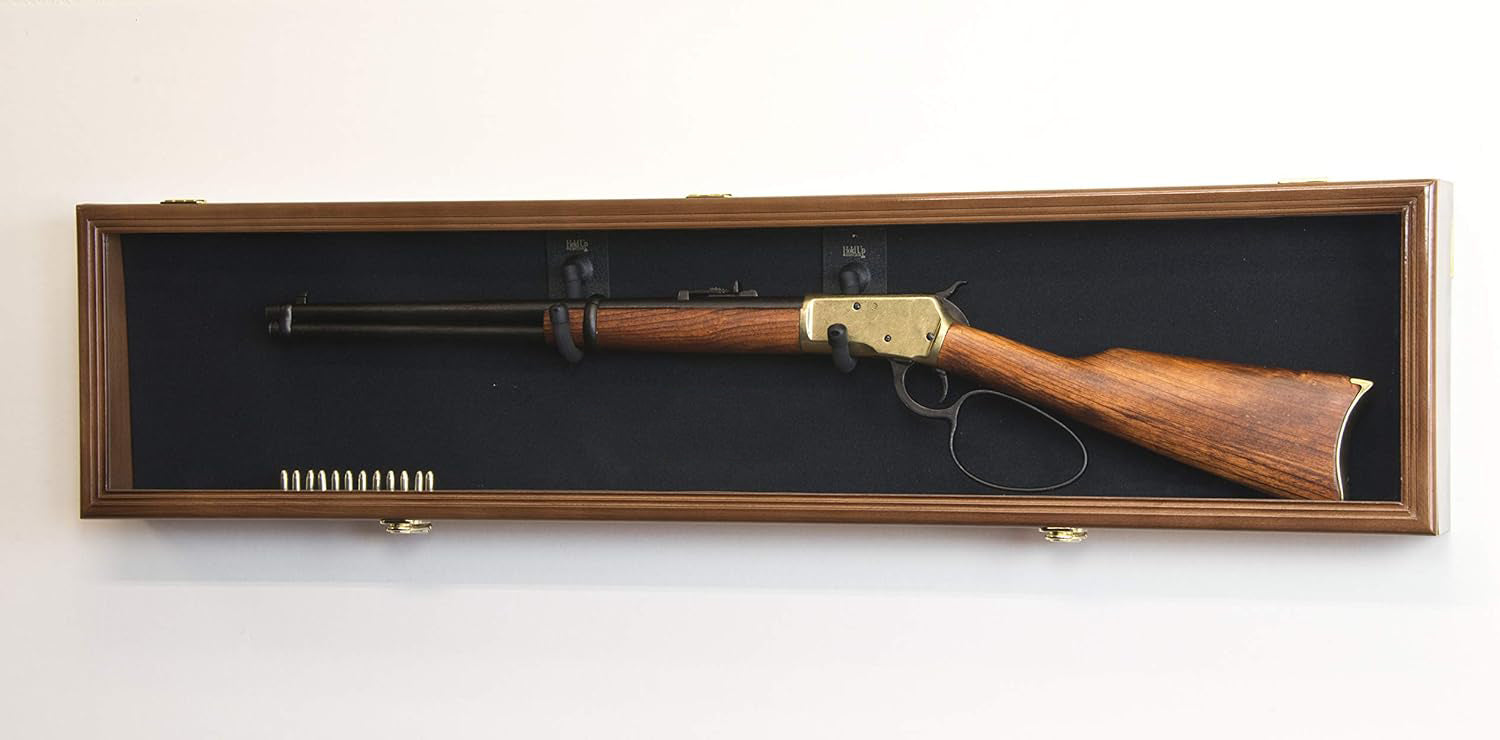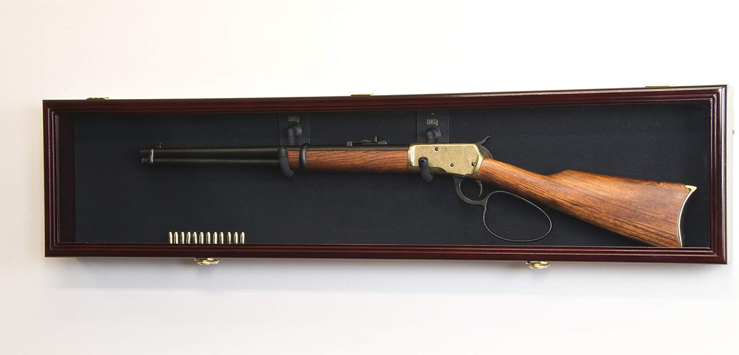 "This case is a showstopper! The walnut wood grain is rich and luxurious, giving my rifle the museum-quality display it deserves. It was super easy to mount, and the hardware included is of excellent quality. The UV glass is a fantastic addition, keeping my gun looking pristine over time."