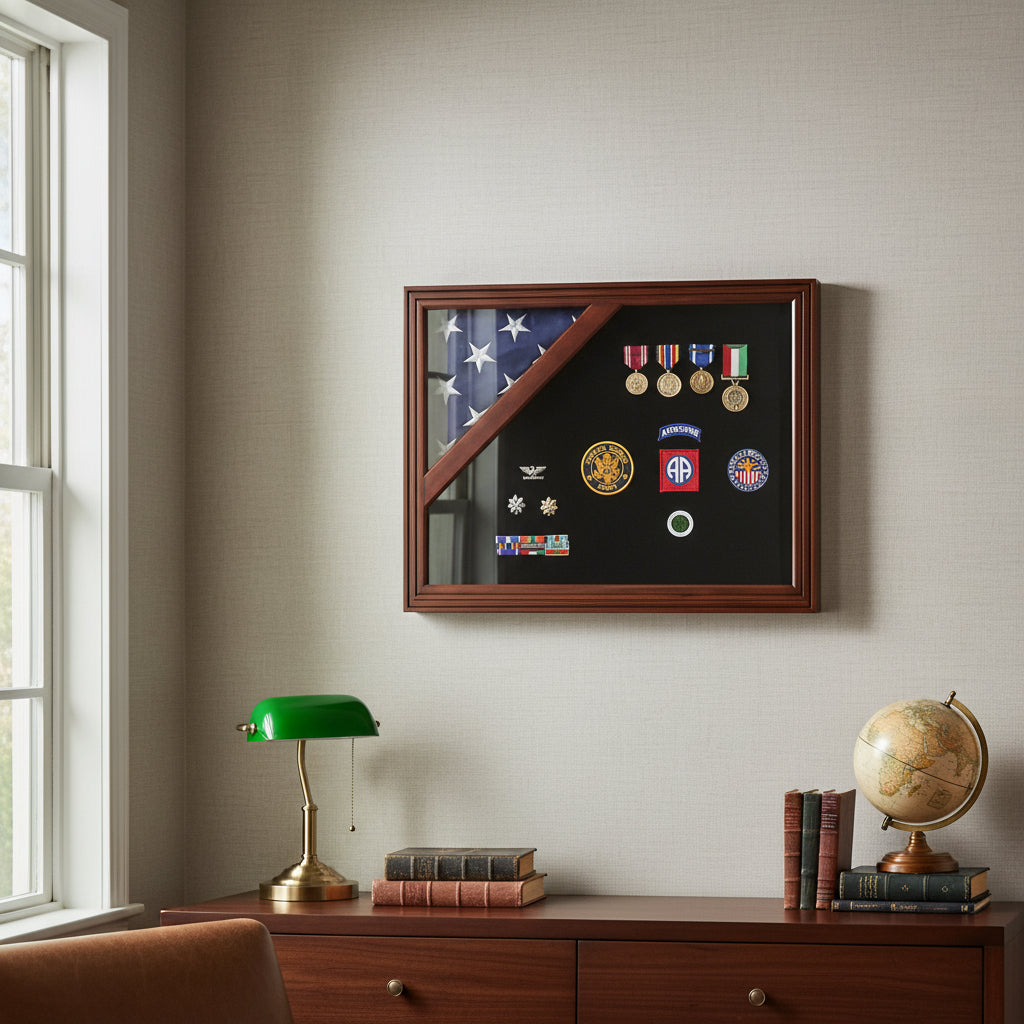 Military Award Shadow Box with Flag Display Case – Handcrafted by U.S. Veterans