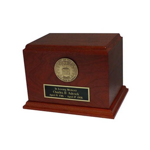 Built to a Federally approved specification and recognized as the chosen urn by the United States Military for our fallen Heroes; this capsule is constructed from solid American Walnut wood and features an Air Force Seal and engraving plate.